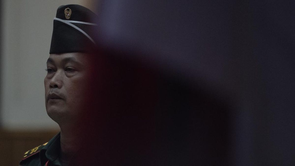 Kopka Basarsyah hadir mendengarkan pembacaan surat dakwaan dalam persidangan di Pengadilan Militer I-04 Palembang, Rabu (11/6).