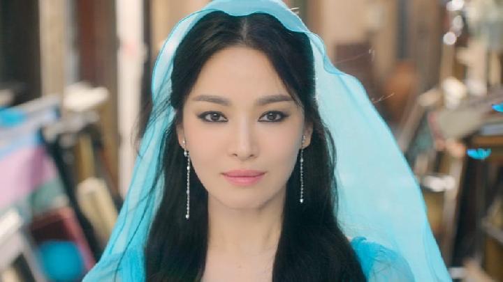 Kemunculannya yang penuh kejutan langsung ramai diperbincangkan di media sosial. Song Hye Kyo tampil mengenakan gaun biru dengan veil transparan dan riasan smoky eye yang tegas, mengingatkan penonton pada karakter Putri Jasmine dalam film Aladdin.