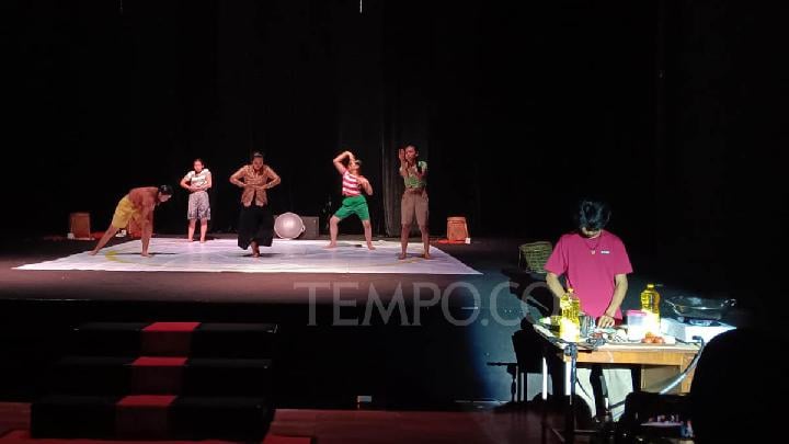 Pertunjukan Teater Air, Jambi, berjudul “Manifesto Dapur Retak” dalam Festival Teater Sumatera ke-3 di Taman Budaya Palembang, 24 September 2025. Tempo/Yuni Rahmawati
