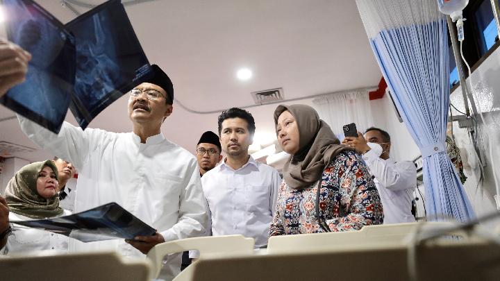 INFO NASIONAL — Menteri Sosial Saifullah Yusuf menjenguk Syehlendra Haical Haikal, santri korban runtuhnya bangunan Pondok Pesantren Al-Khoziny Buduran Sidoarjo, di RSUD R.T Notopuro pada Rabu sore, 1 Oktober 2025.