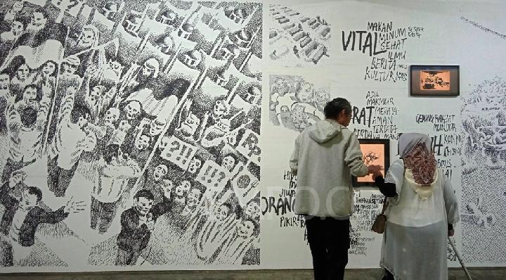 SELASAR Sunaryo Art Space di Bandung menggelar pameran tunggal karya mendiang Wagiono Sunarto. Pada pameran berjudul Menulis dengan Satu Jari, berlangsung sejak 17 Oktober 2025 hingga 25 Januari 2026, ikut dipajang koleksi gambar yang baru dipamerkan. Karya itu terkait dengan peristiwa reformasi 1998.