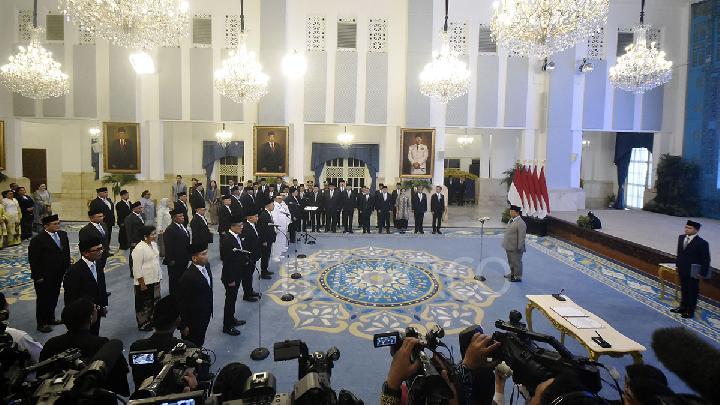 Jumlah anggota Kabinet Merah Putih bertambah setelah Prabowo melantik Wakil Menteri Dalam Negeri dan Wakil Menteri Kesehatan baru di Istana Kepresidenan, Jakarta Pusat, Rabu, 8 Oktober 2025.