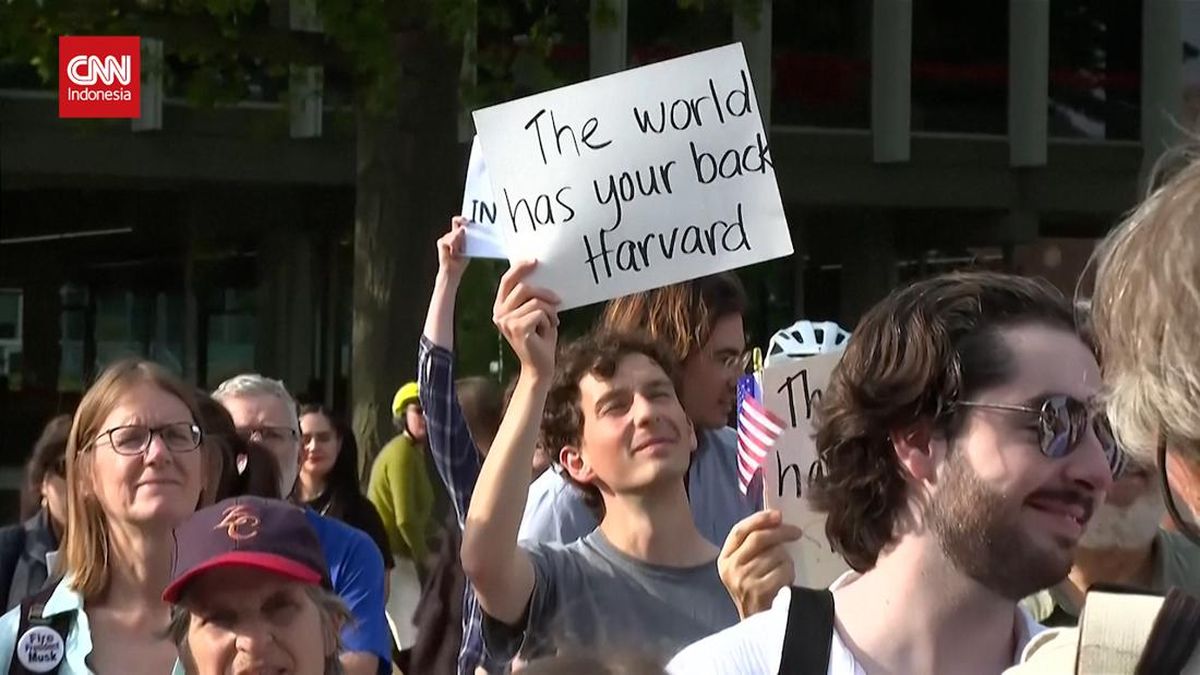 Sejumlah mahasiswa dan staf pengajar Universitas Harvard berunjuk rasa di kampus, Selasa (27/5), imbas penghapusan program mahasiswa asing di universitas tersebut oleh pemerintahan Trump.